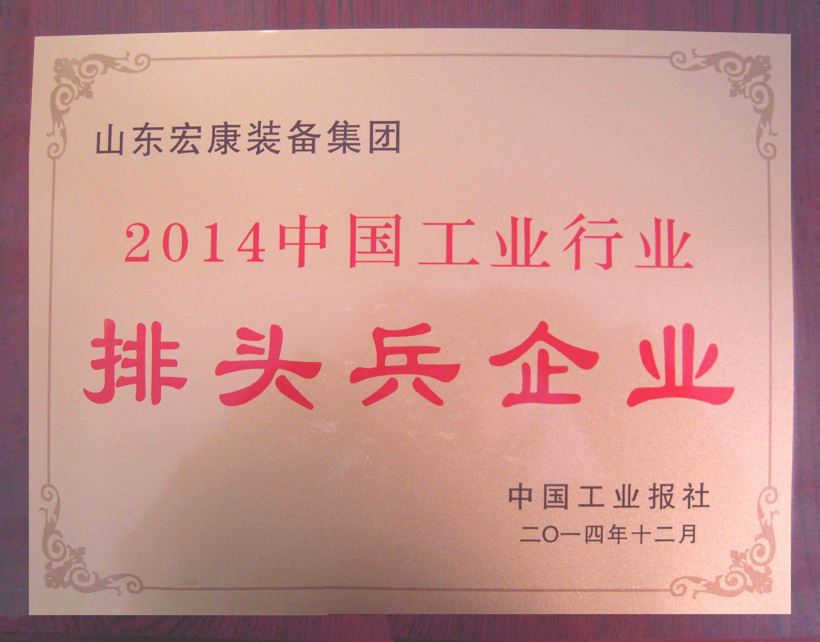 2014年12月12日,備受矚目的“2014中國工業(yè)行業(yè)排頭兵企業(yè)發(fā)展論壇”在北京隆重召開,來自全國百余家工業(yè)行業(yè)知名企業(yè)代表出席了會(huì)議,宏康集團(tuán)在全國眾多知名企中脫穎而出,被評為“2014中國工業(yè)行業(yè)排頭兵企業(yè)”。這也是集團(tuán)公司自2011年首次榮膺中國工業(yè)行業(yè)排頭兵企業(yè)后再次摘取的又一殊榮。集團(tuán)公司常務(wù)副總經(jīng)理潘憲平代表宏康集團(tuán)參加論壇并領(lǐng)獎(jiǎng)。