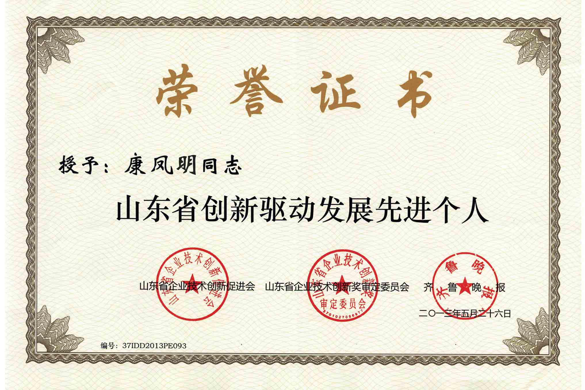 日前,據(jù)山東省企業(yè)技術(shù)創(chuàng)新促進會魯創(chuàng)促字【2013】9號文件《關(guān)于表彰全省企業(yè)技術(shù)創(chuàng)新能力建設(shè)工作百強企業(yè)和先進單位個人的通報》,我集團公司被評為“山東省創(chuàng)新驅(qū)動發(fā)展先進單位”,董事長、總經(jīng)理康鳳明被授予“山東省創(chuàng)新驅(qū)動發(fā)展先進個人”。