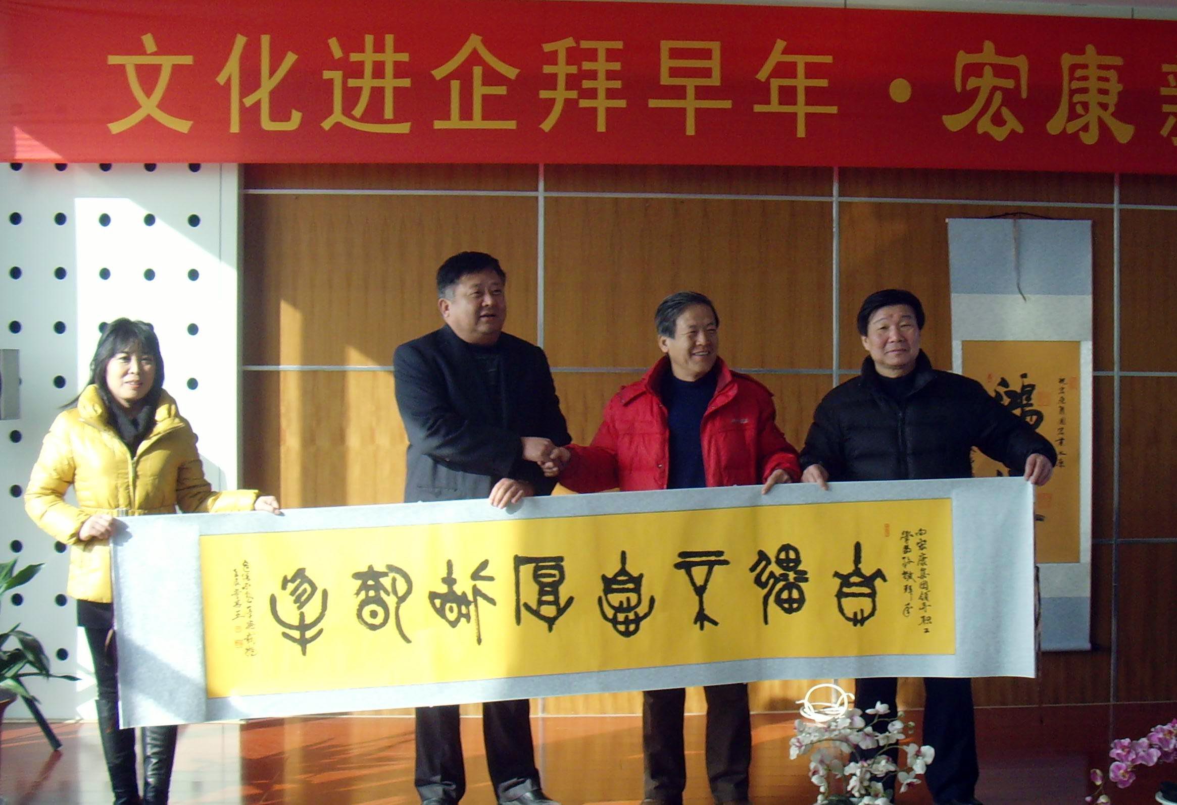 1月24日,泰山文化協(xié)會副主席、《泰山文化研究》總編、研究員呂大明,協(xié)會秘書長、研究員郭立模,畫家、山東科技大學(xué)副教授李金玲,山東省甲骨文書法協(xié)會理事、泰安市甲骨文書法協(xié)會會長、岱宗書畫院院長、泰山文化協(xié)會特聘專家、北京魯特書畫院院長董德平一行來宏康集團(tuán)開展“文化進(jìn)企拜早年·宏康蛇年吉祥”活動。集團(tuán)董事長、總經(jīng)理康鳳明,副總經(jīng)理聶化濤及部分員工參加了本次活動。在活動儀式上,書畫家們先后作了熱情洋溢的講話。他們對宏康近年來的快速發(fā)展給予了高度評價,對宏康積極為國家納稅安排就業(yè),為社會做出巨大貢獻(xiàn),取得良好的社會效益給予了高度贊揚(yáng)。集團(tuán)董事長、總經(jīng)理康鳳明作了重要講話,他說“文化進(jìn)企拜早年”活動的開展,豐富了企業(yè)文化生活,并感謝各位畫家書法家們對宏康的厚愛和支持。在活動儀式上,書畫家們向宏康集團(tuán)贈送了他們的作品、書籍,并現(xiàn)場潑墨寫字作畫、書寫春聯(lián),一幅幅精美的字畫展現(xiàn)在職工面前,令人陶醉,大家對大師們的杰作欣賞之余贊不絕口。蛇年來臨之際,宏康員工飽嘗了豐富的精神文化大餐,書畫家們把溫暖送進(jìn)了宏康員工心中。